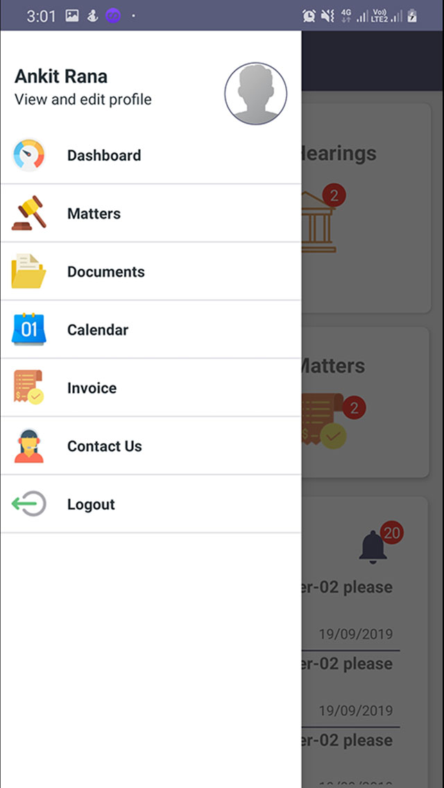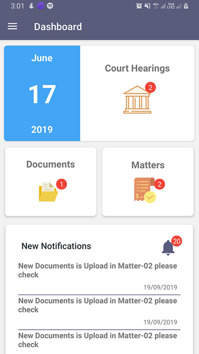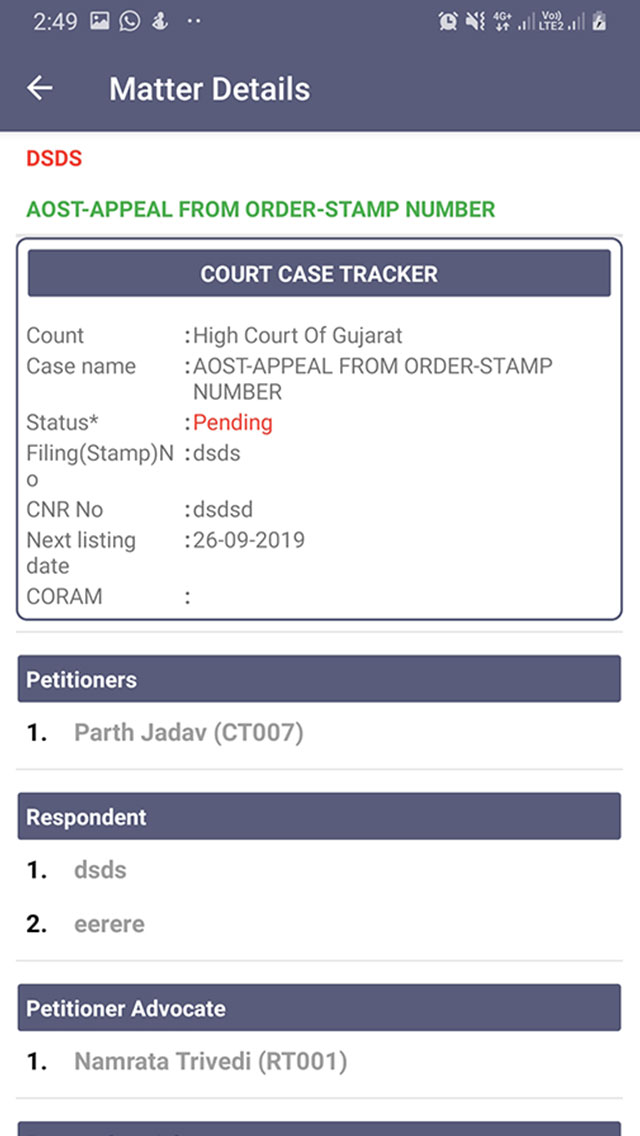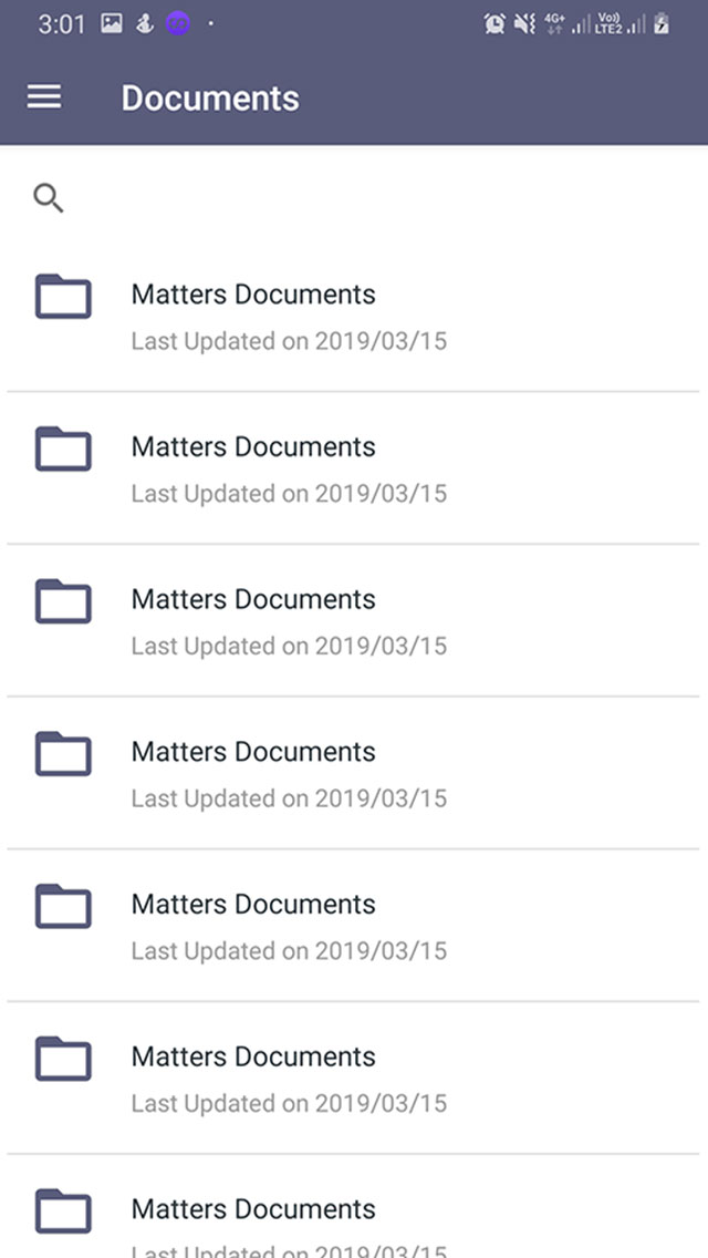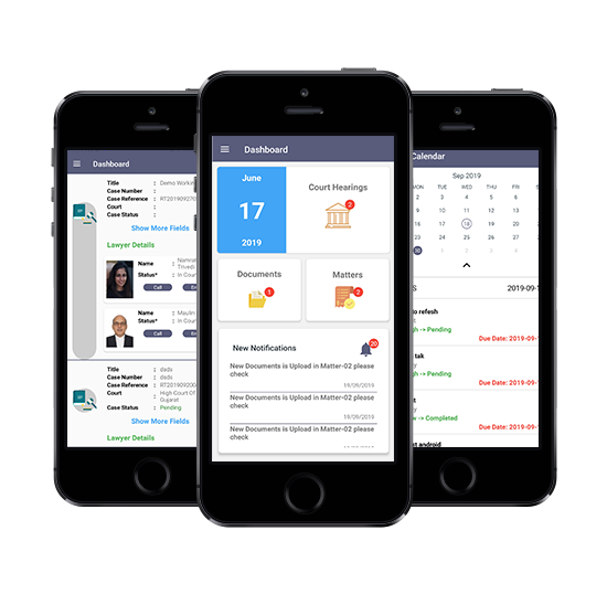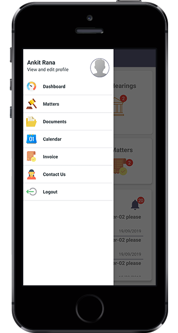 on the matter status, process, assigned lawyer etc. Get real time updates on case status as the lawyers update information on the go through application.