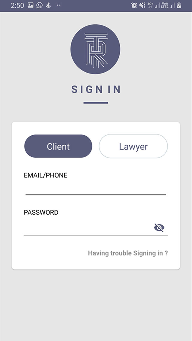 the Application. Stay connected to your lawyers 24*7 by reaching out to them anytime and having real time update of their current availability status through the application.